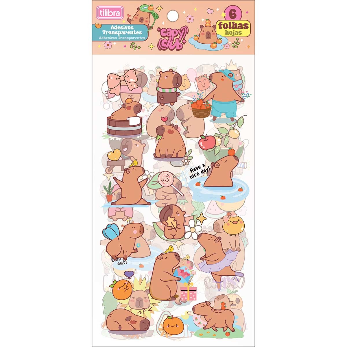 Deixe a fofura do universo das capivaras invadir o seu dia a dia com a cartela de Adesivos Decorados Transparentes Capyclub 6 Folhas da Tilibra! São mais de 100 adesivos encantadores e transparentes para personalizar cadernos, agendas, notebooks, celulares, copos, garrafas e muito mais!