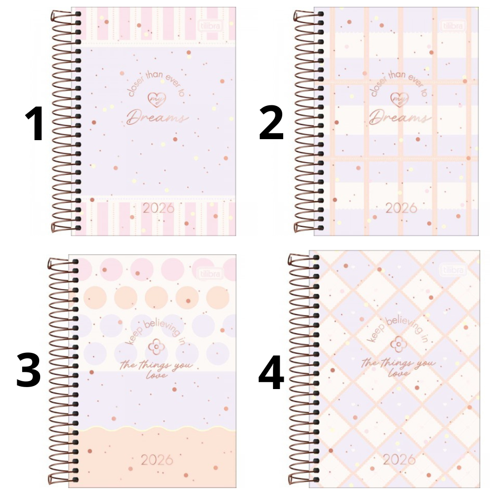 A agenda espiral diária 129x187mm Soho 2026 pode ser usada para organizar os compromissos do dia a dia, em casa, no trabalho e na escola. Este produto, com visão anual, mensal e diária, possui capa dura com hot stamping e parte interna decorada, espiral rosé, 176 folhas, adesivos e bolsa de papel. Folhas 63g/m²