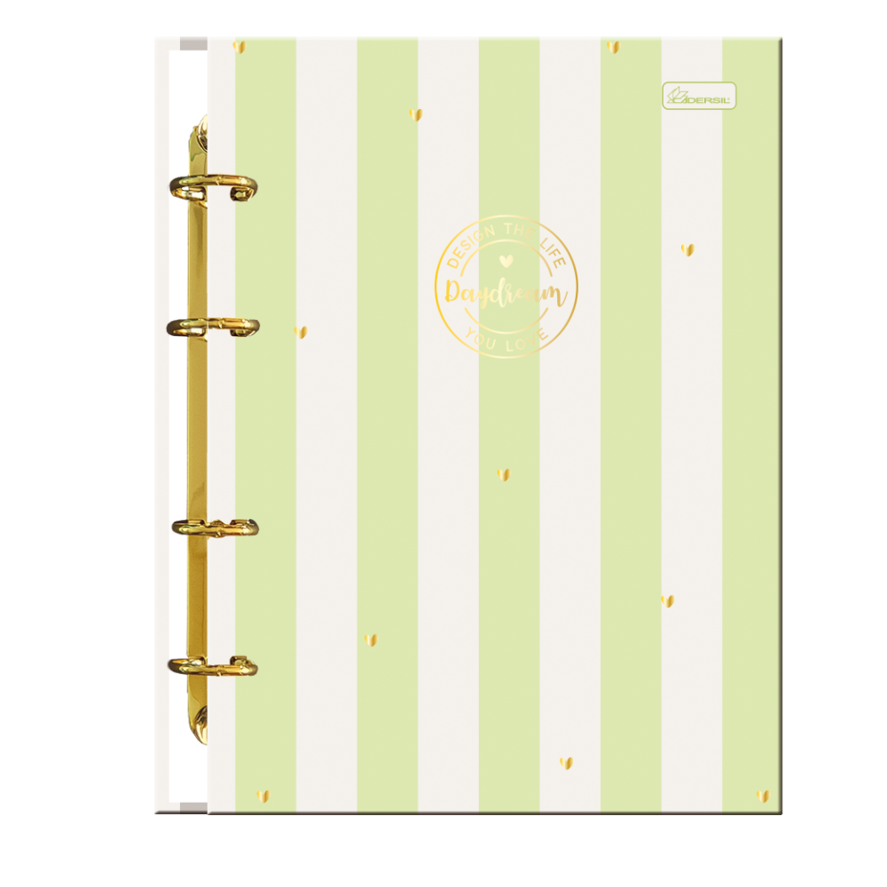 O Caderno Argolado Colegial Folhas possui formato compacto, é leve e bastante funcional. Vem com capa dura com detalhe metalizado e parte interna decorada, divisórias, folhas pautadas e bolsa para guardar trabalhos e anotações.