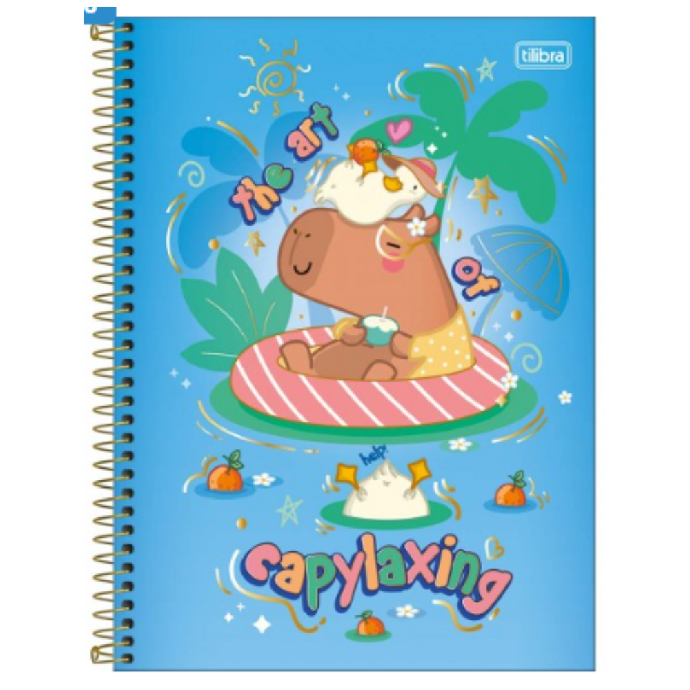 O Caderno Espiral Capa Dura Universitário 1 Matéria Capyclub 80 Folhas possui capa dura com a parte interna decorada, bolsa de papel decorada para guardar trabalhos e anotações e folha com adesivos funcionais. Ideal para o dia a dia na escola ou na faculdade.