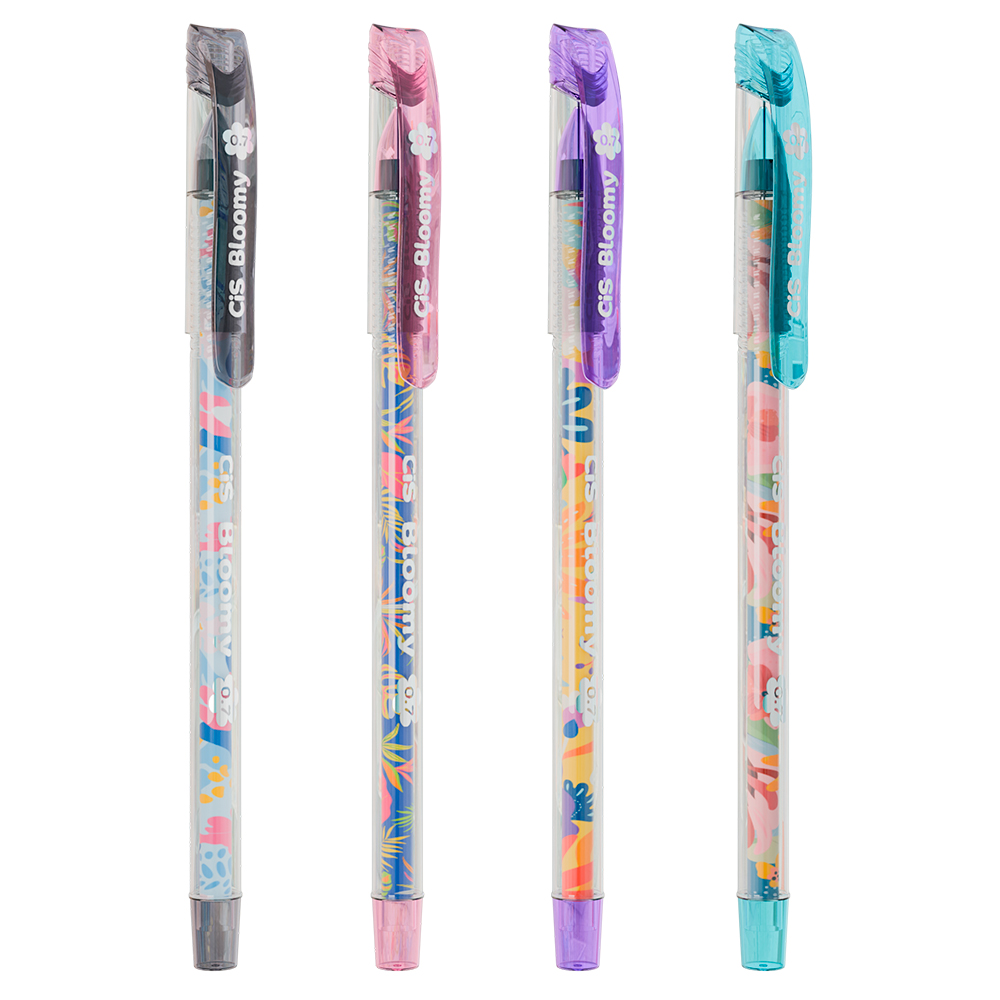 - Cor da tinta conforme cor do corpo: roxo, rosa, azul e preto