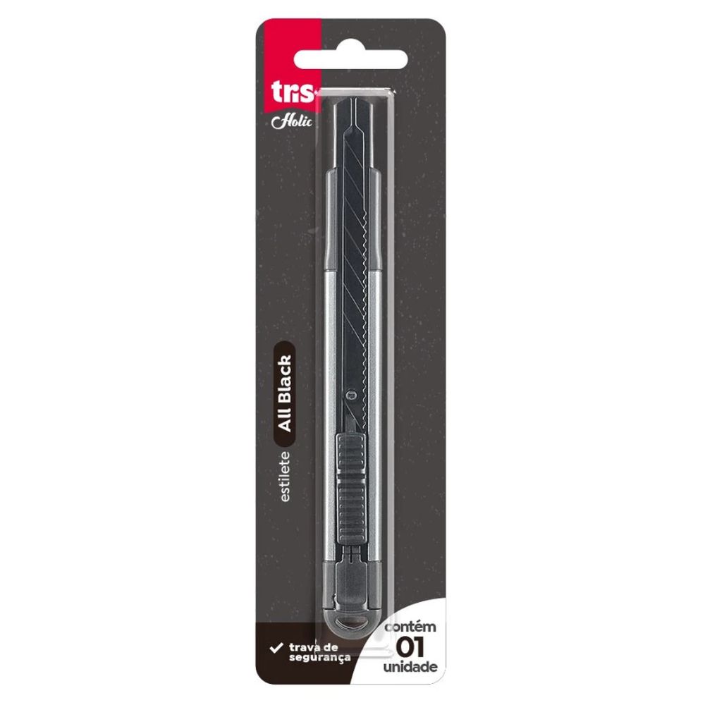 O estilete All Black possui corpo metálico, super resistente e com trava de segurança. É próprio para lâmina estreita de 9mm.