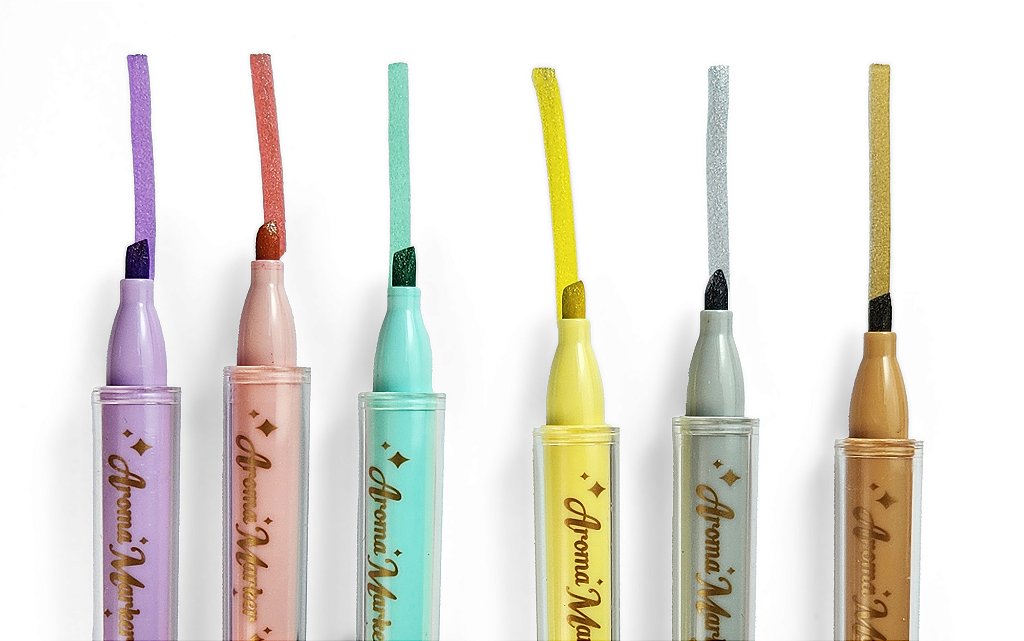 Marca texto com cheirinho e glitter, kit com 6 cores pra você se apaixonar:
