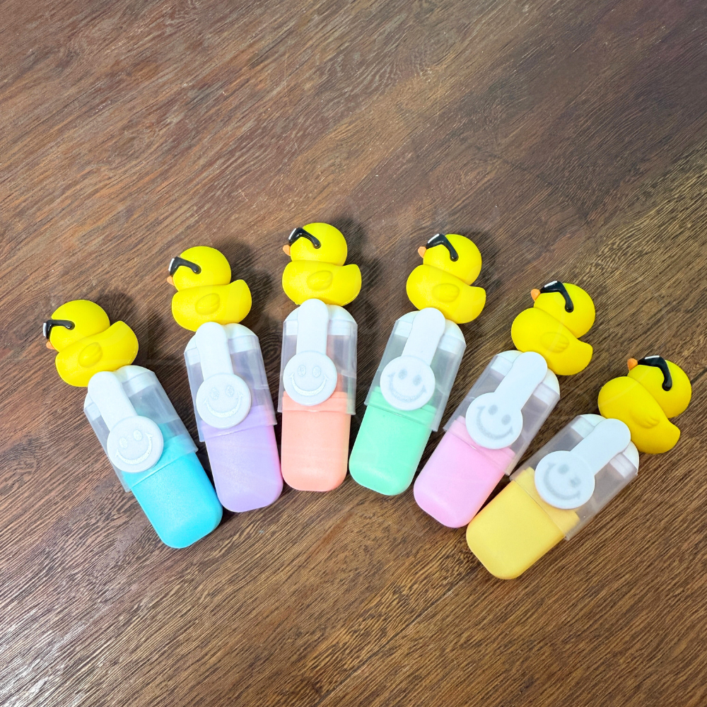 Kit de mini marca textos de patinho, contém 6 cores: Azul, lilás, rosa, laranja, verde e amarelo.