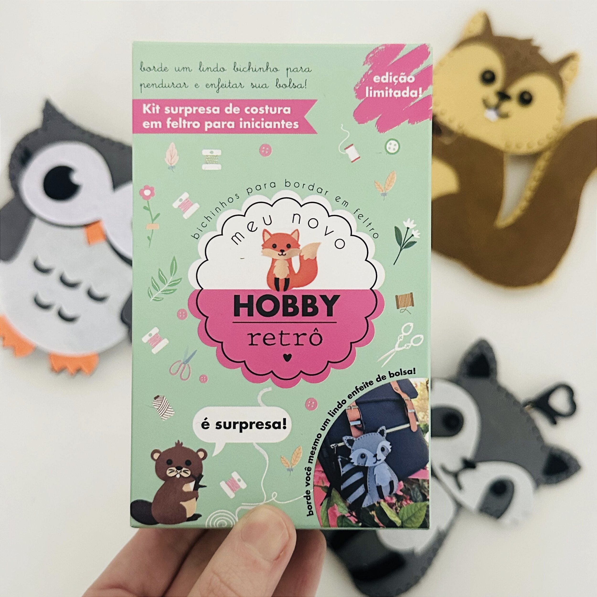 Cada kit vem com todos os materiais para você montar um bichinho surpresa em feltro do zero e pendurar na sua bolsa.