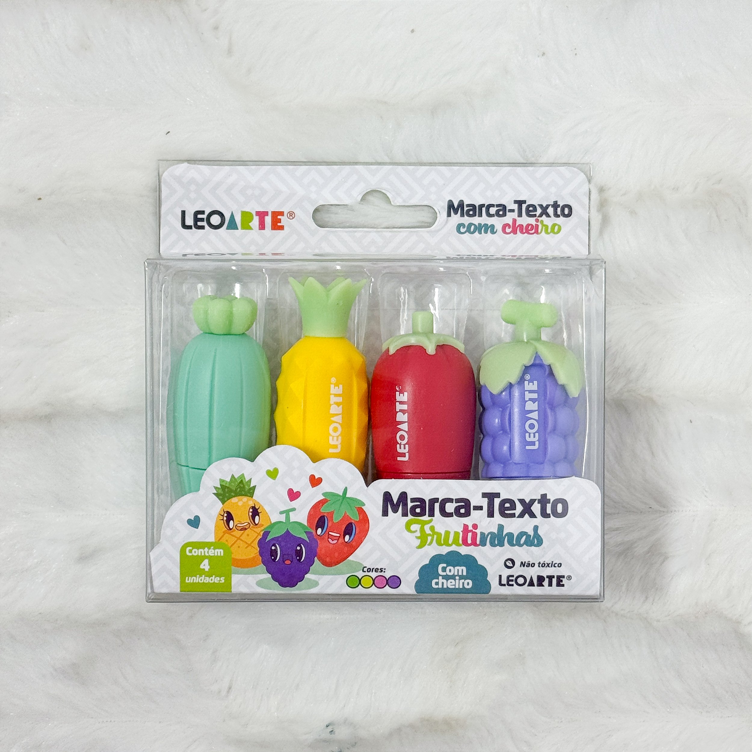 O Marca-Texto Mini Frutinhas com Aroma - Caixa com 4 Unidades LeoArte é um toque divertido ao material escolar ou de escritório.