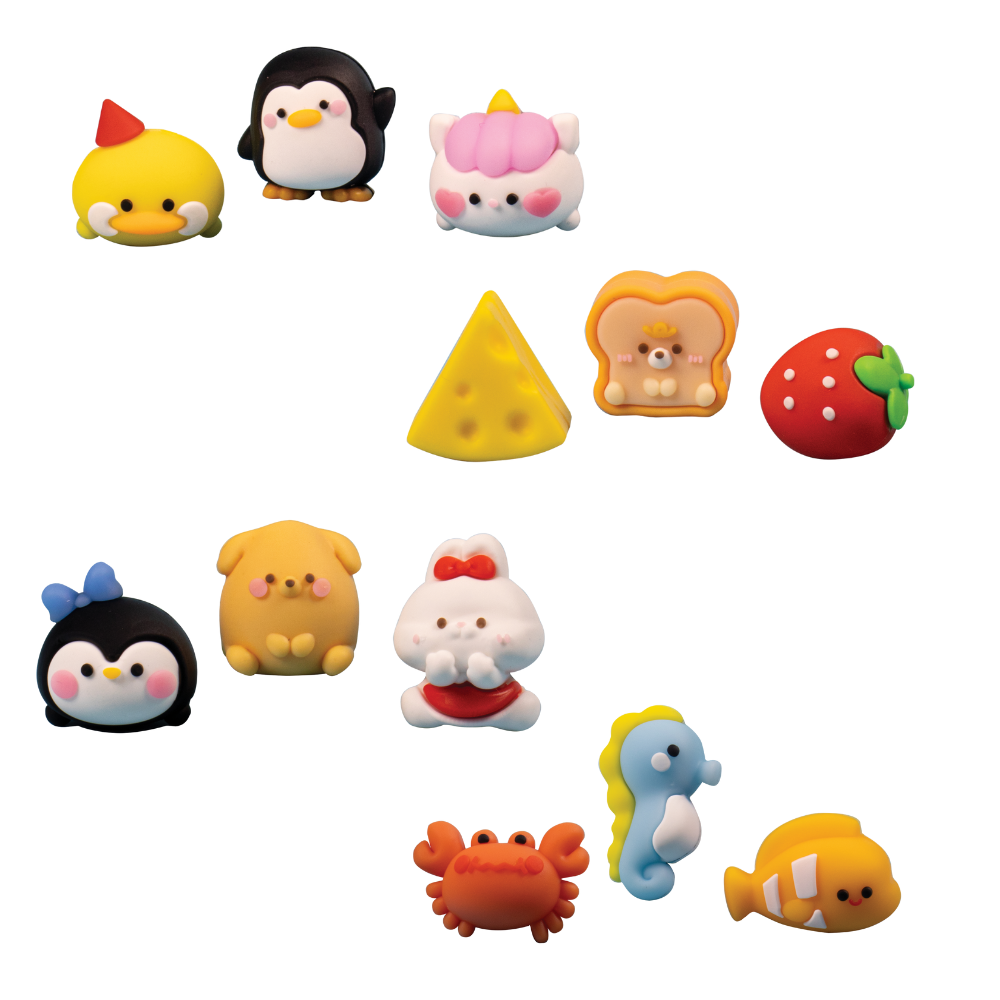 Borrachinhas fofas 3D com 3 unidade cada pacotinho.