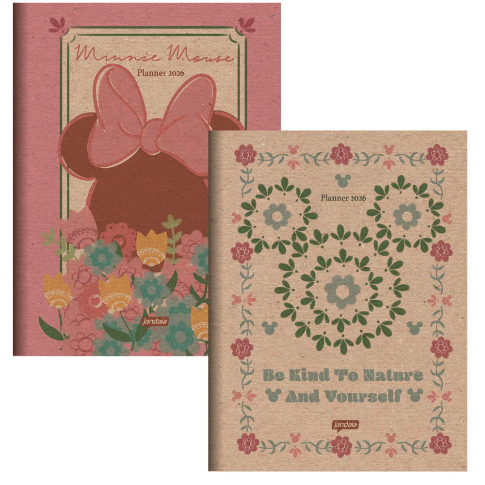 Planner Mensal Costurado 2026 Minnie e Mickey Jandaia